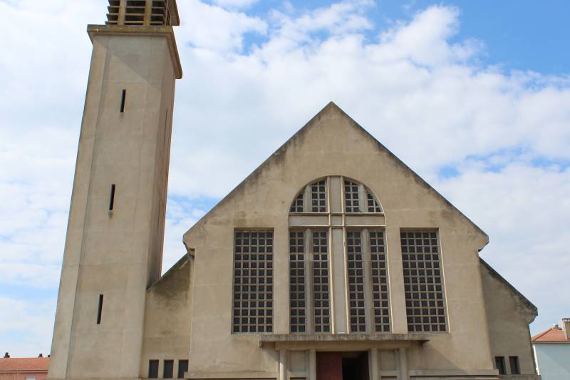 Derrière l’école, découvrez cette église dont le sol est en carreaux incrustés.