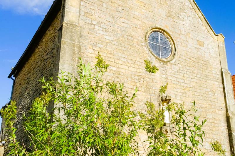 Derrière l’école, découvrez cette église dont le sol est en carreaux incrustés.