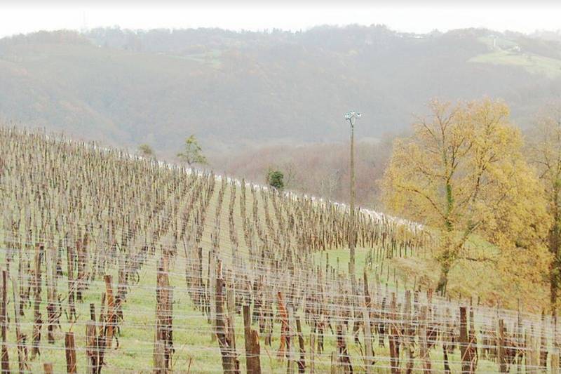 Sur les coteaux de Jurançon à 13 km de Pau, le vignoble de 7 ha est exploité face à la...